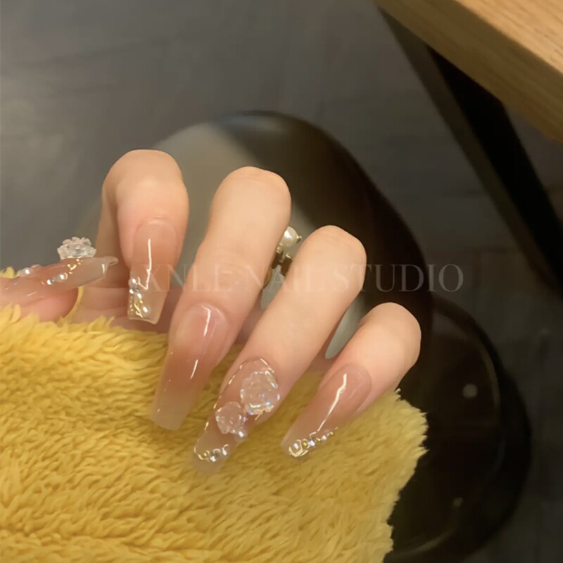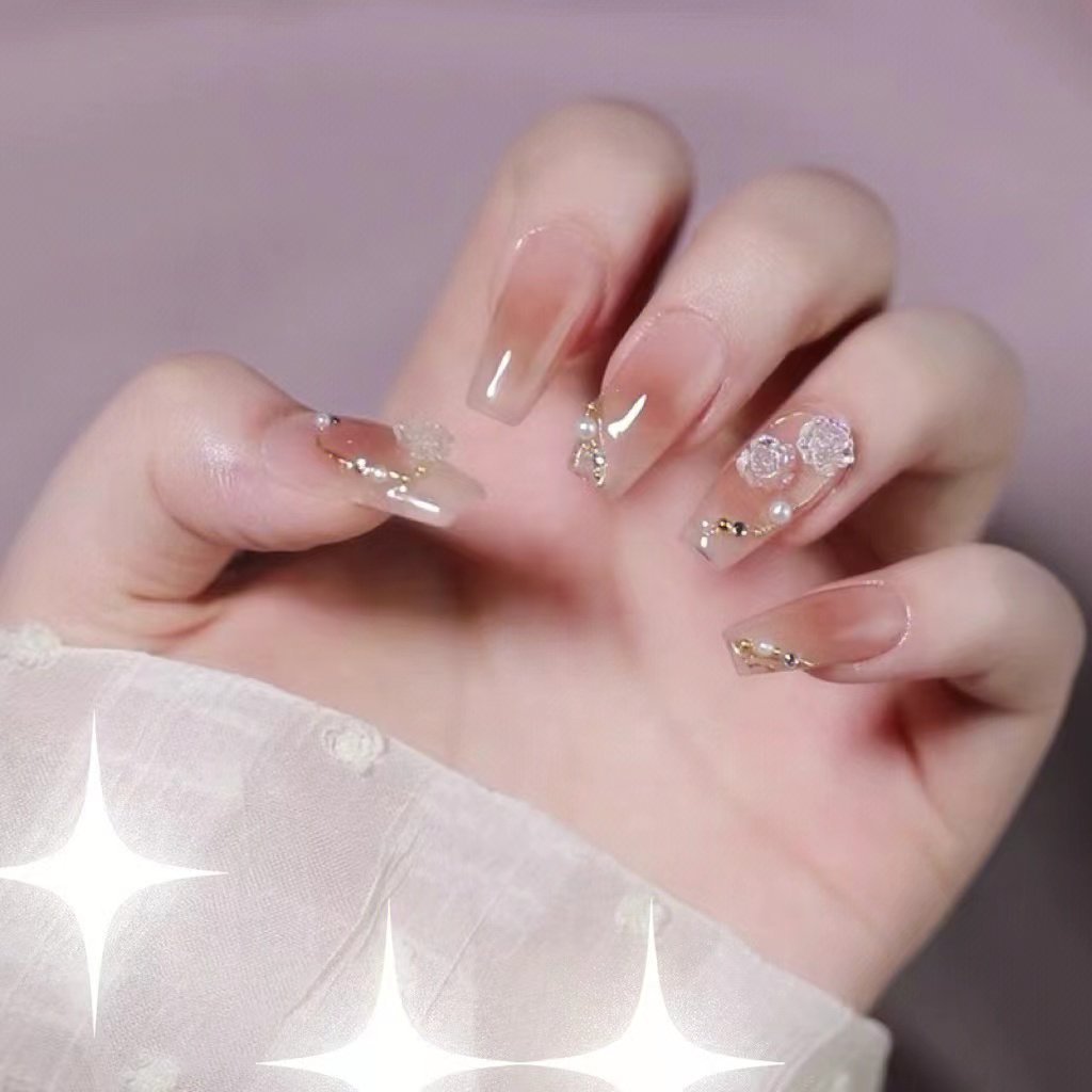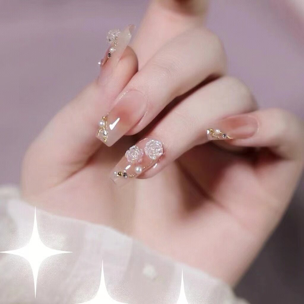📚 涟漪|美式甜心银装素裹裸色纯欲手工美甲渐变山茶花日常穿戴甲