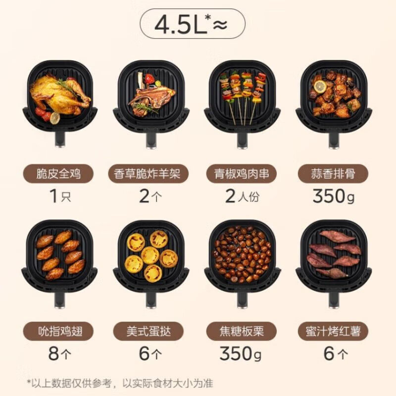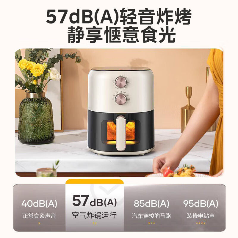 📚 美的空气炸锅家用4.5L大容量可视化窗精准控温不沾易清洗 双旋钮