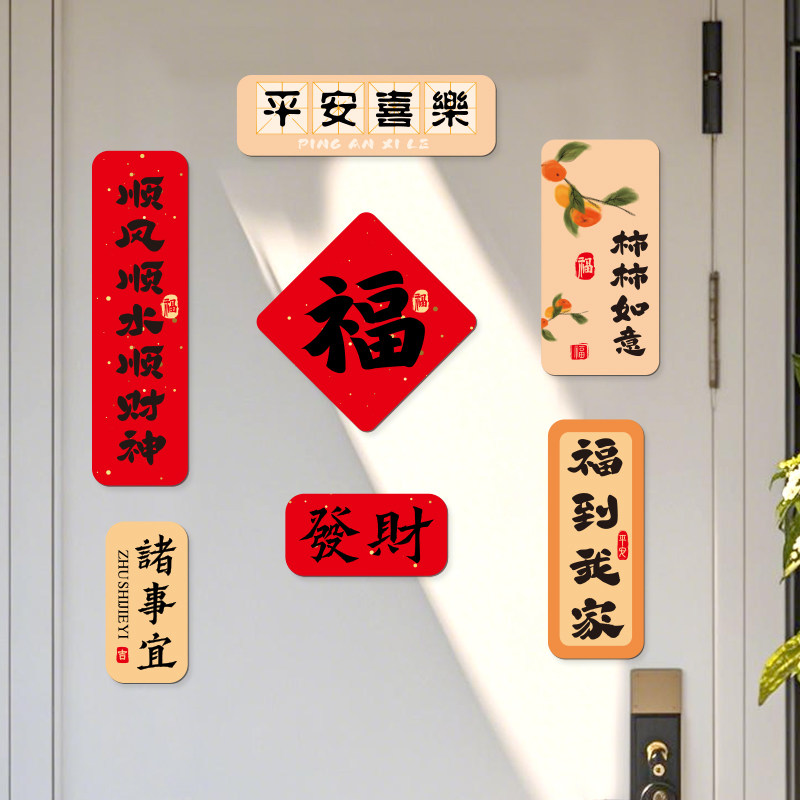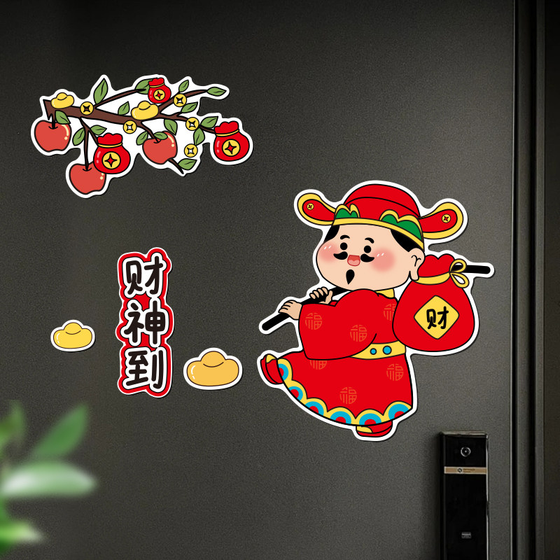📚 财神入户门防盗门美化贴纸乔迁新居温暖冰箱厨房门装饰贴画P392