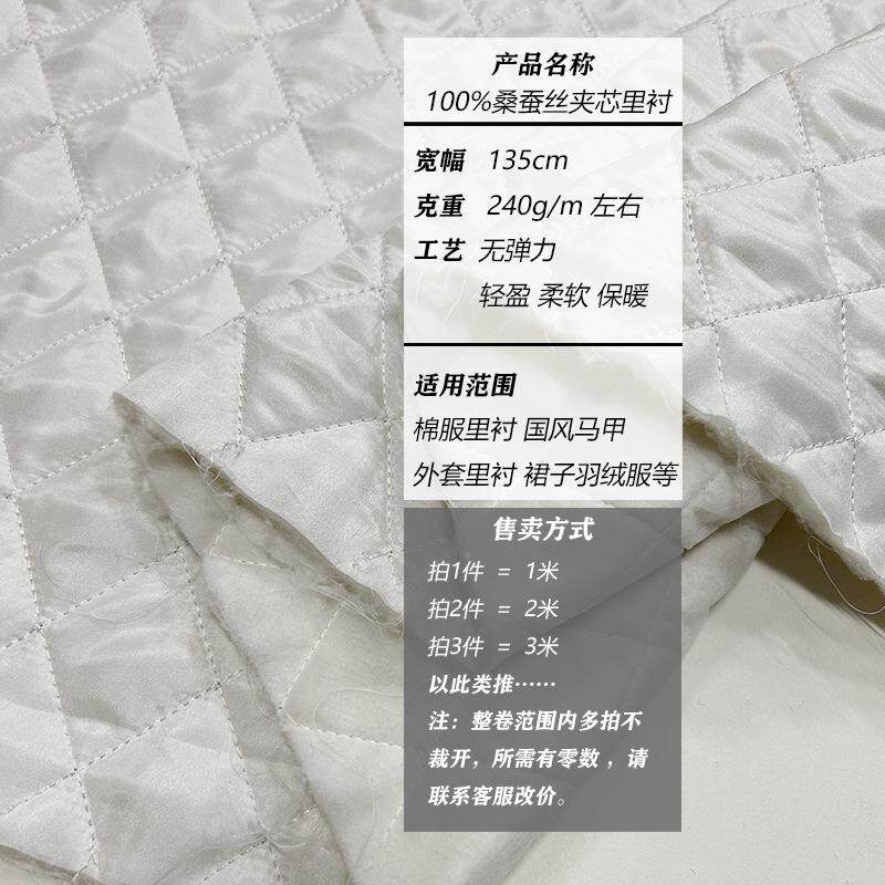 📚 夏料桑蚕丝絮片内衬里料纯真丝棉绗F775SM8J缝布里春布内胆夹里衬