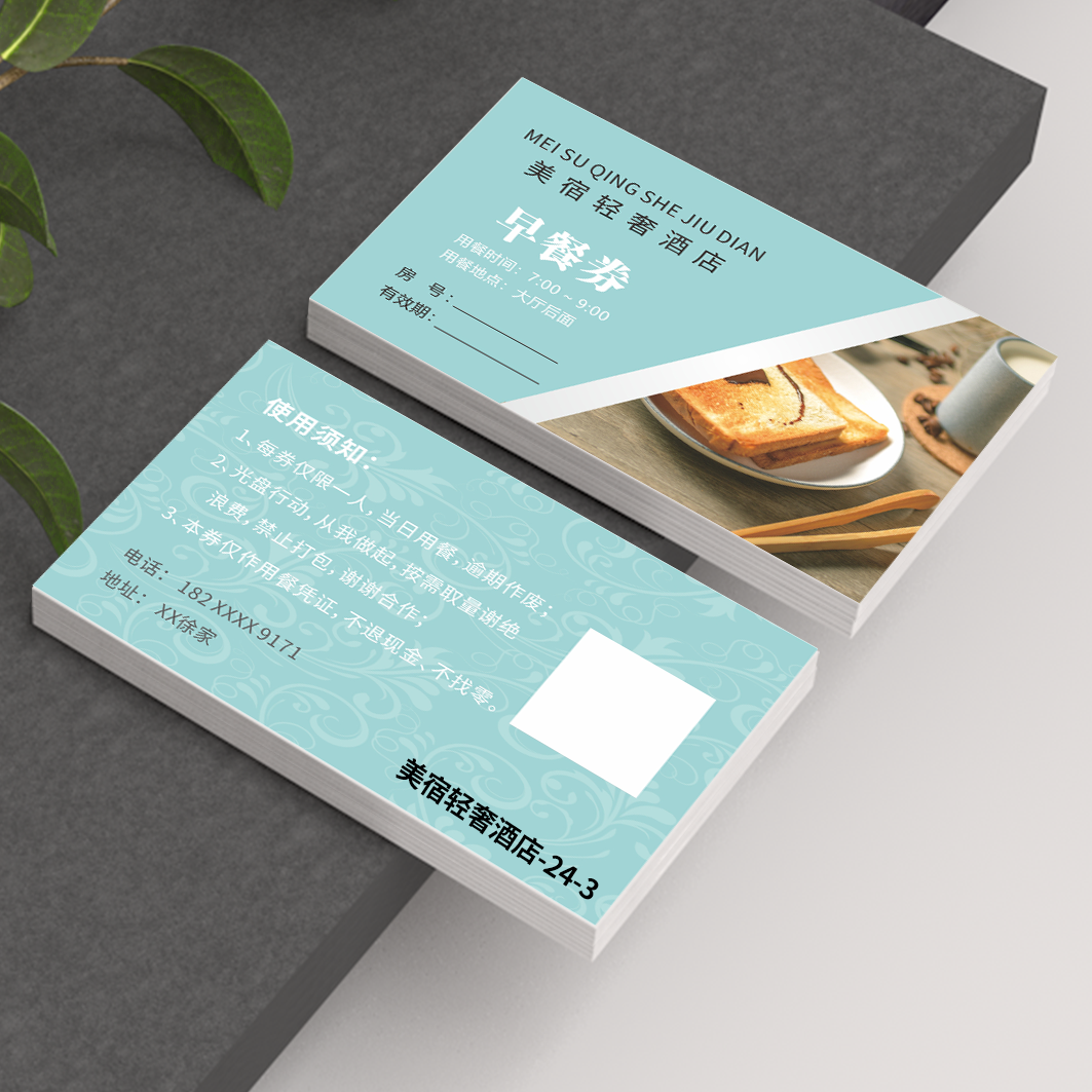 📚 宾馆商务酒店早餐券定制就餐券订做活动广告制作双面印刷打印