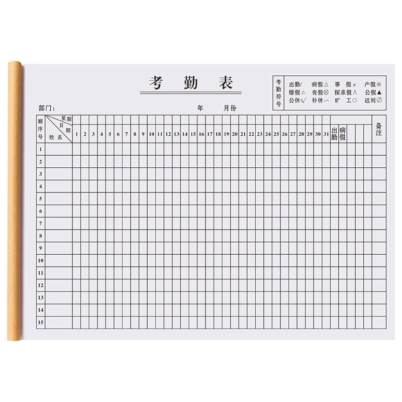 📚 考勤表工地记工本31天表格定制工天万能签到表工人出勤登记本工分计工簿上班排版加班打卡本子员工考勤记录表