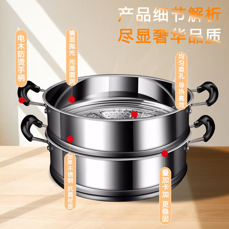 📚 德国食品级不锈钢蒸屉家用蒸笼蒸锅蒸格篦子蒸馒头神器通用蒸格