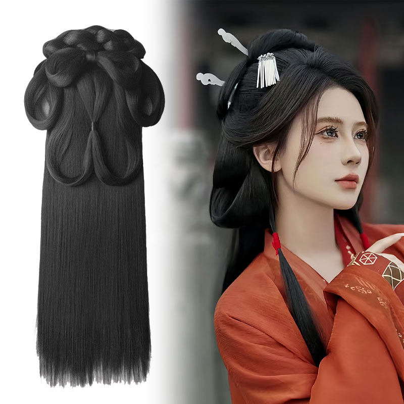 📚 战国袍汉服假发一体式古风假发头饰魏晋风发髻古装假发包马面裙女