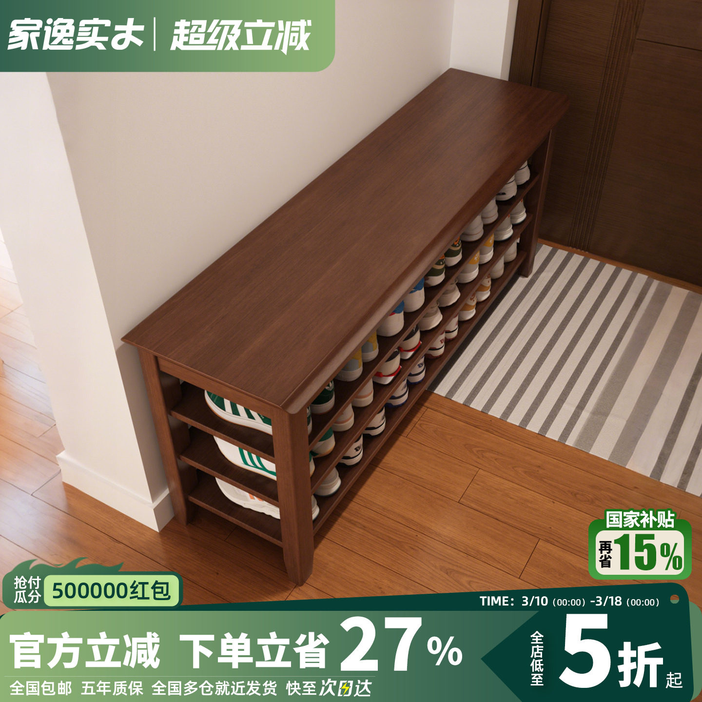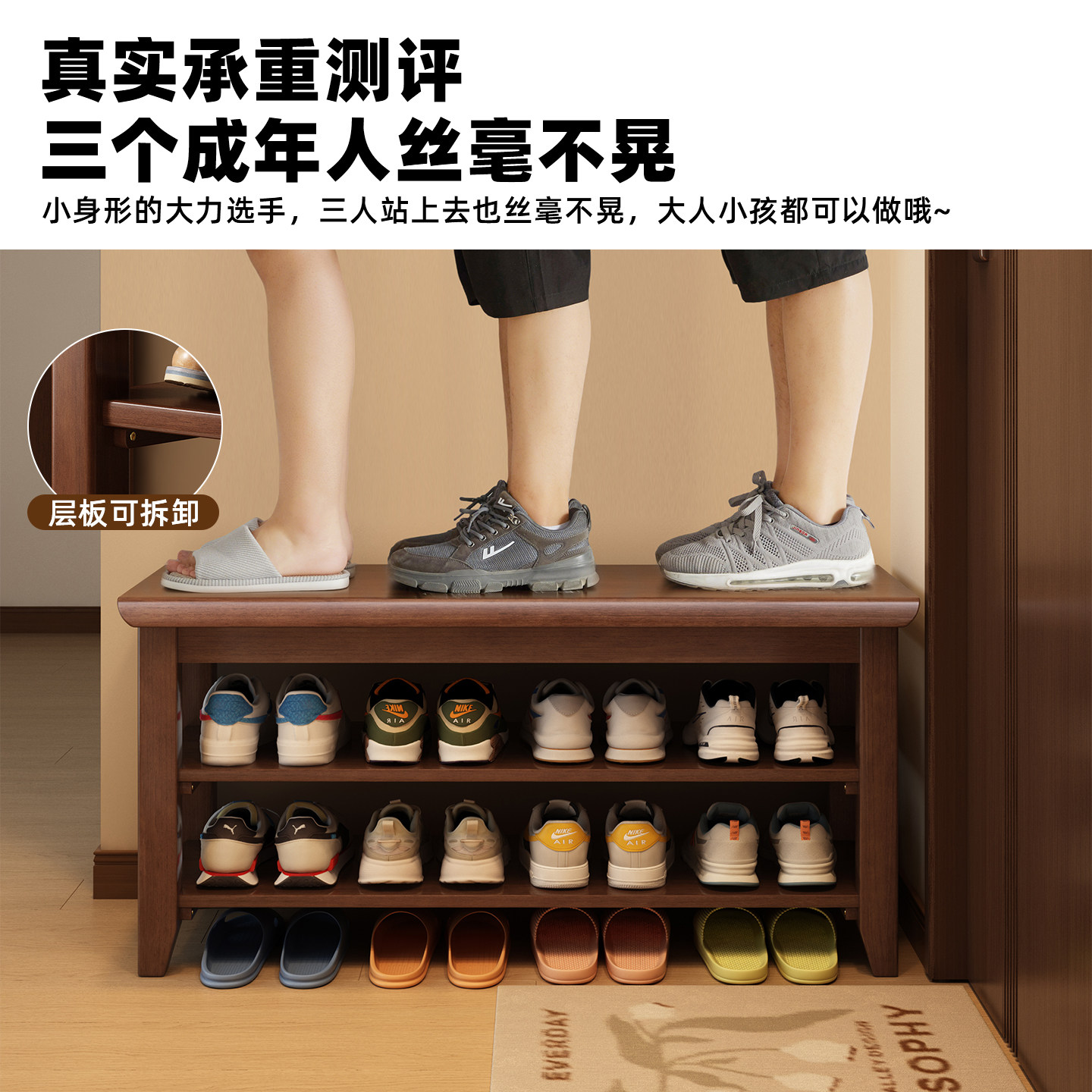 📚 实木鞋架多层家用门口换鞋凳家用鞋柜一体可坐穿鞋凳小窄置物架