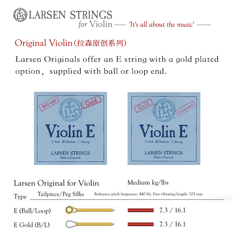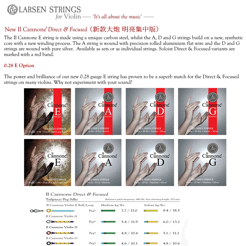 📚 新款丹麦原装进口Larsen Cannone拉森大炮小提琴弦系列拉森金E弦