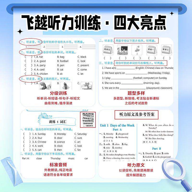 📚 湖南专用】飞跃英语听力专项训练书英语阅读理解与完型填空初中七八九年级上下册人教版英语教材同步练习册飞越听力英语语法作业本