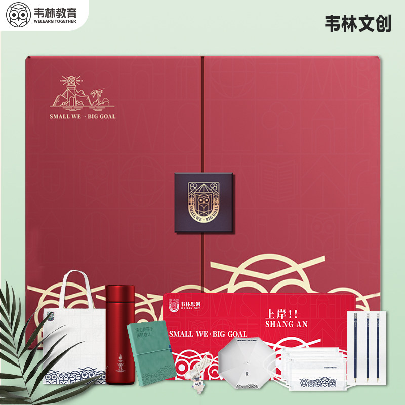 📚 韦林教育独家定制周边文创大礼盒笔记本帆布包铅笔雨伞智能保温杯口罩