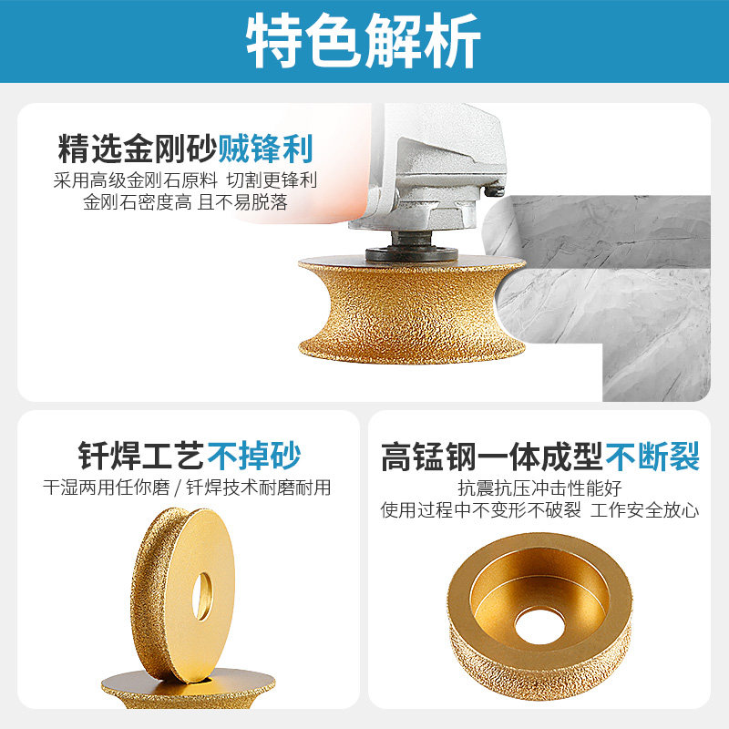 📚 石材磨轮半圆磨边轮大理石石英石瓷砖修边钎焊金刚石角磨机打磨片