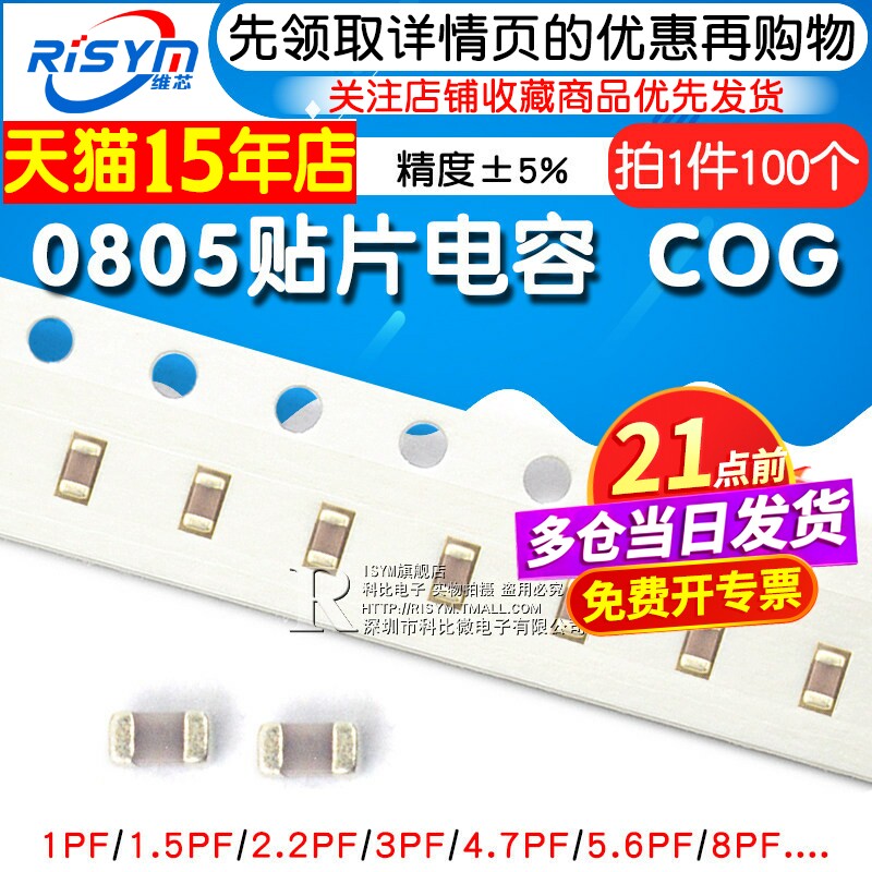 📚 0805贴片电容COG 220J 22pF 1pF 4.7pF 22 33 47pF 100pF 101J 5%