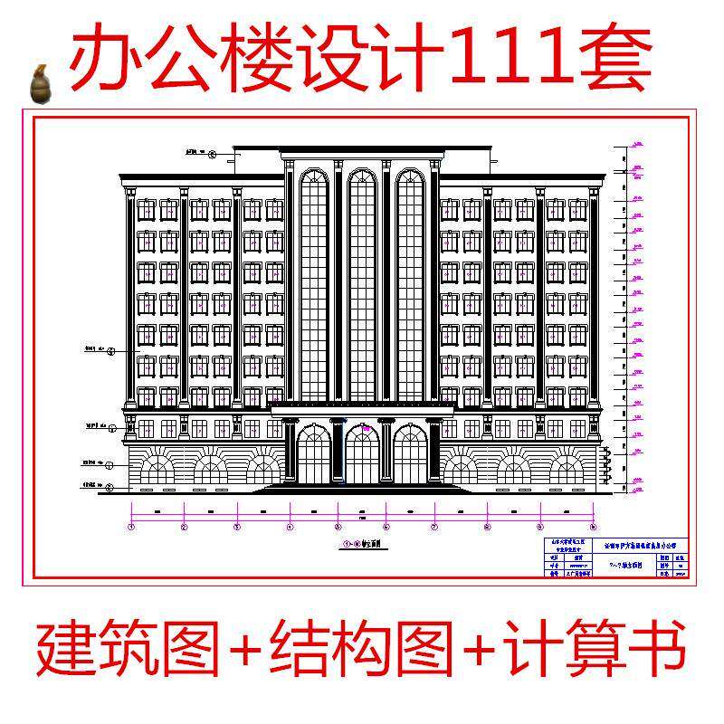 📚 土木工程办公楼设计CAD施工图纸建筑图结构图计算书全套模板素材