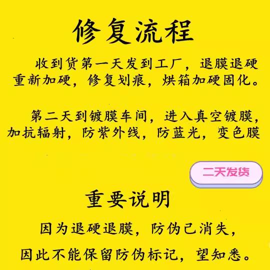 📚 镜片修复划痕划伤脱膜发黄磨损裂痕近视远视镀膜树脂绿膜太阳镜膜
