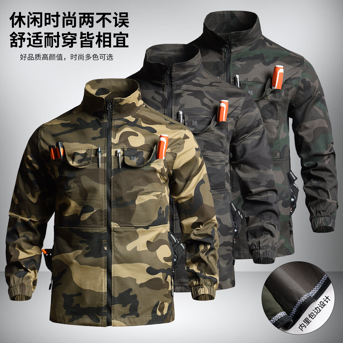 📚 弹力迷彩服男套装春秋季户外工作服耐磨耐脏劳保套装单上衣单裤
