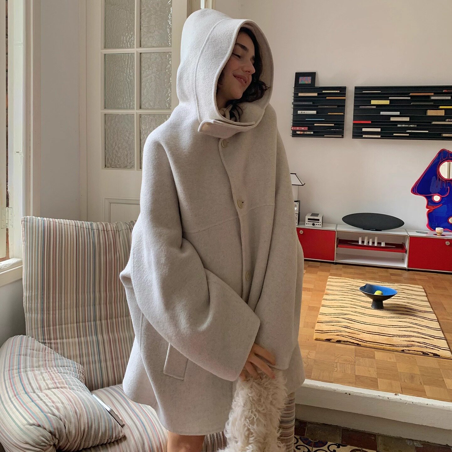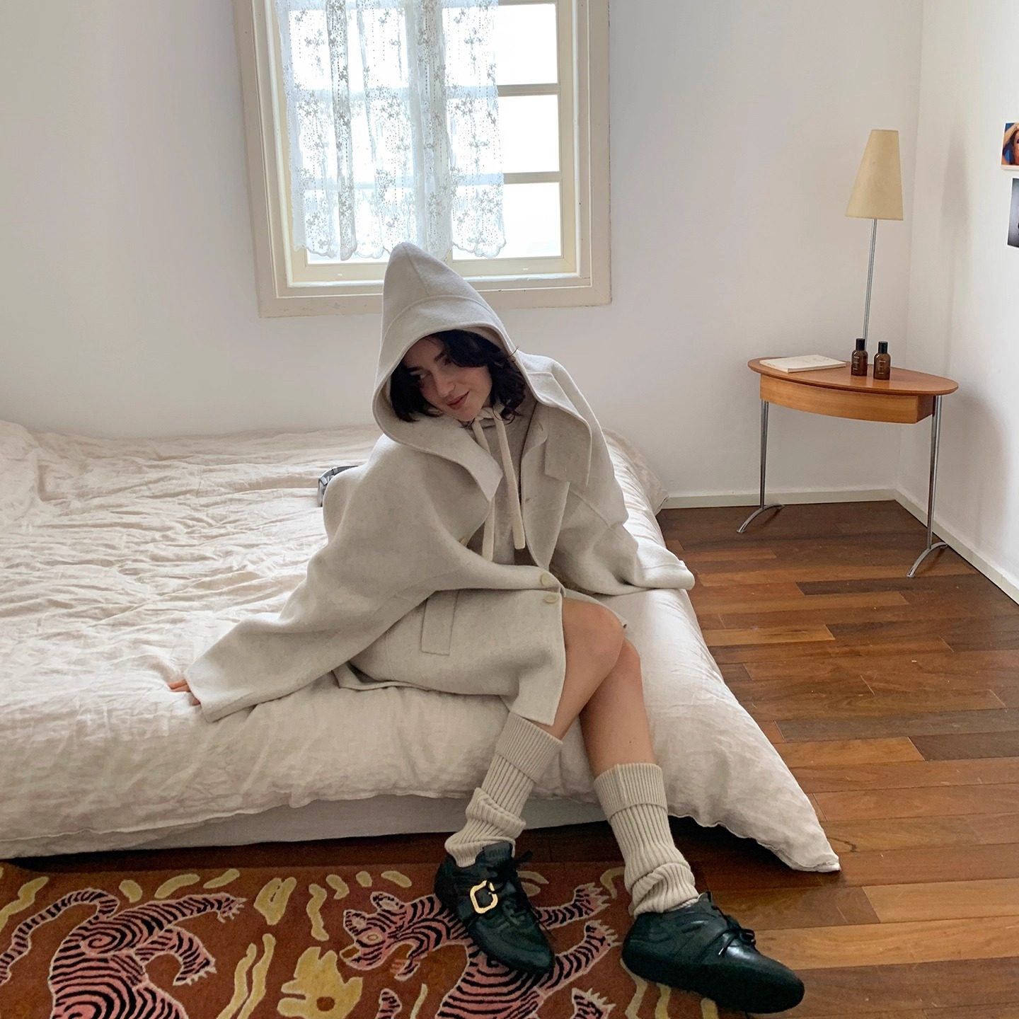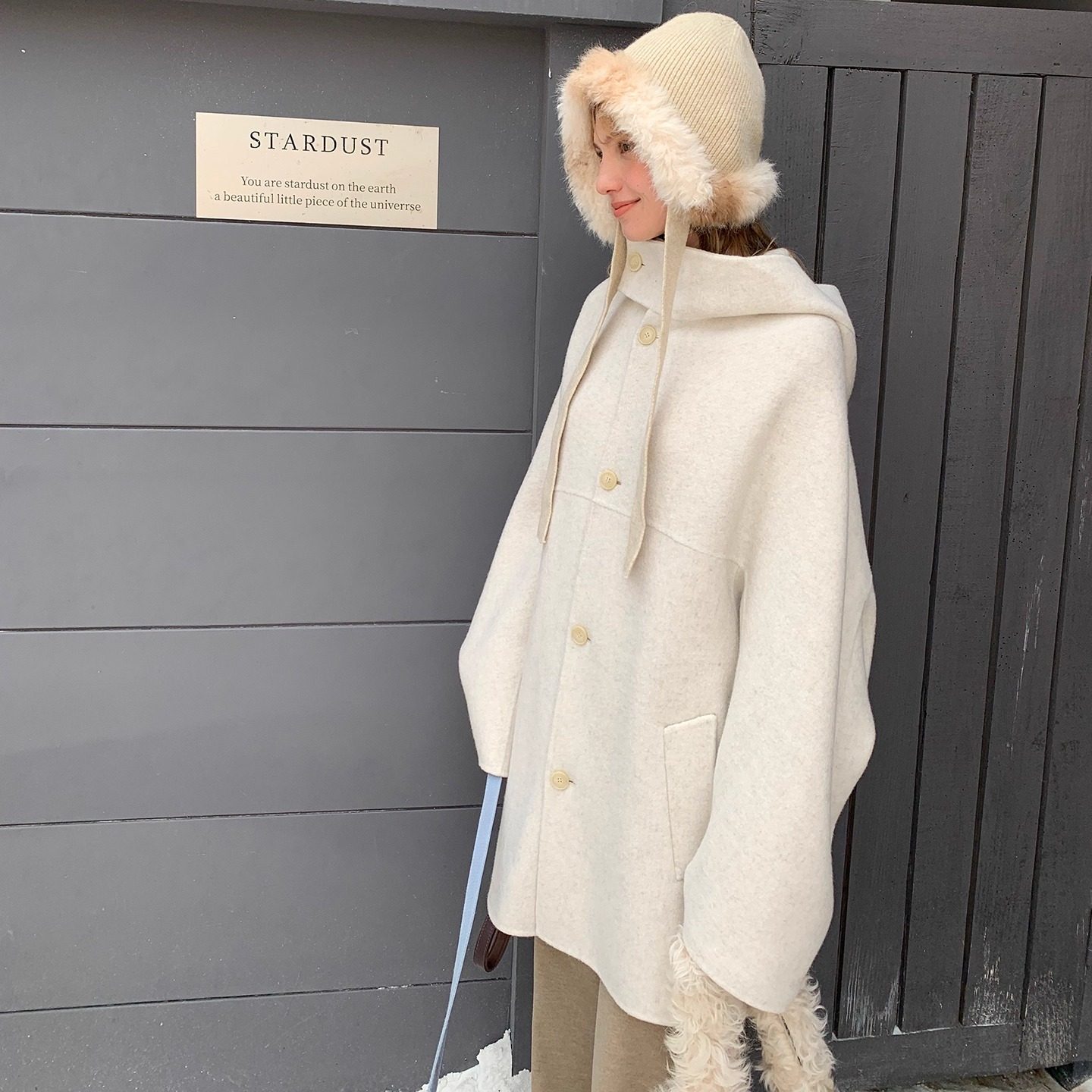 📚 KERNEL COSMOS雪沫朗姆酒 廓形感女巫斗篷连帽羊毛双面呢手工大衣