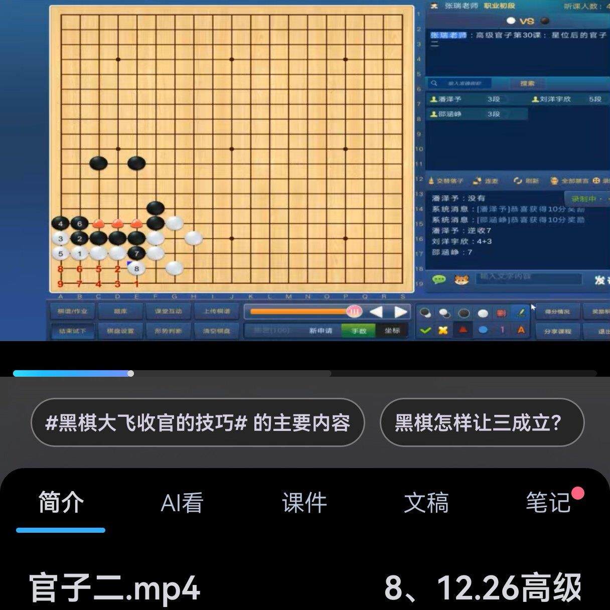 📚 同恒围棋教学视频课官子108课之高级官子职业棋手张瑞讲解共36课