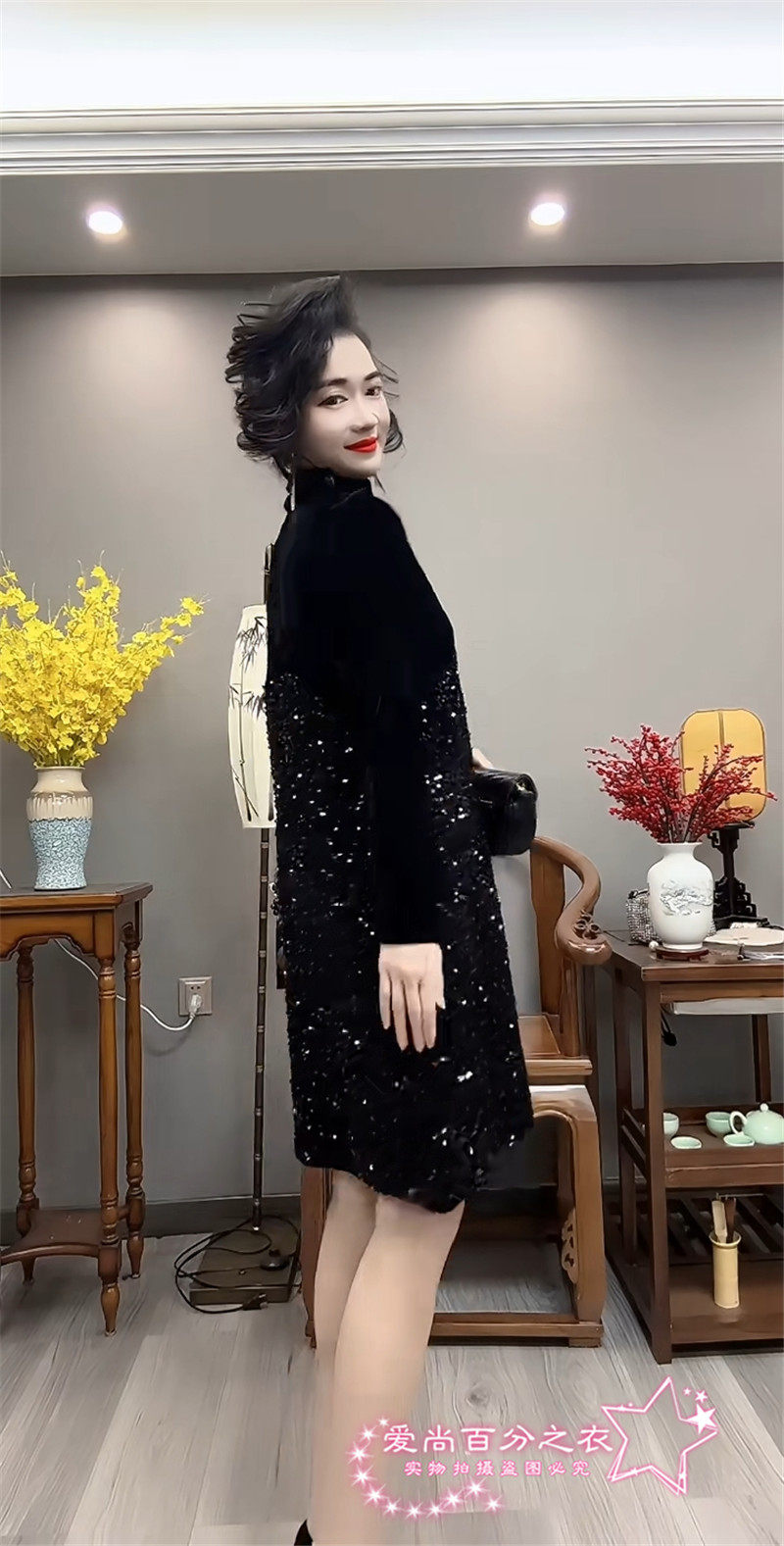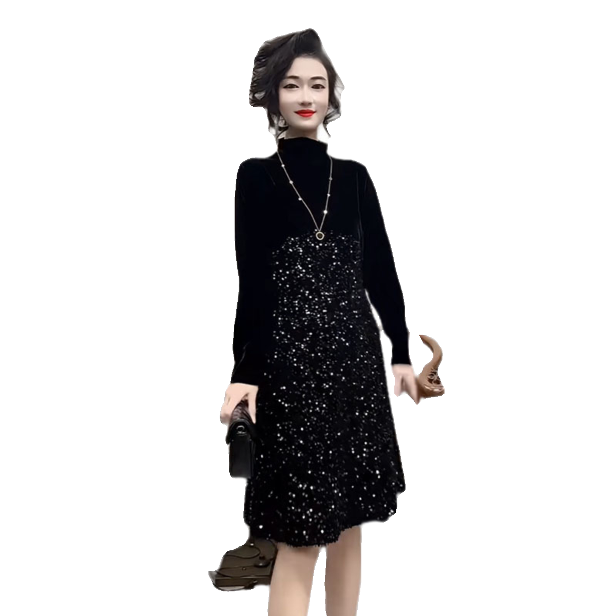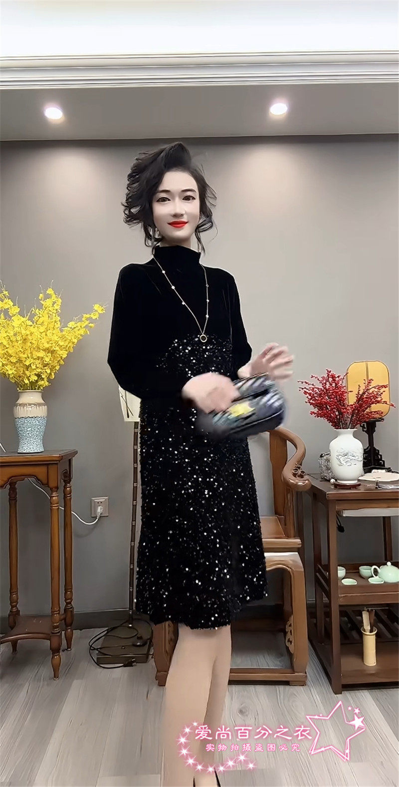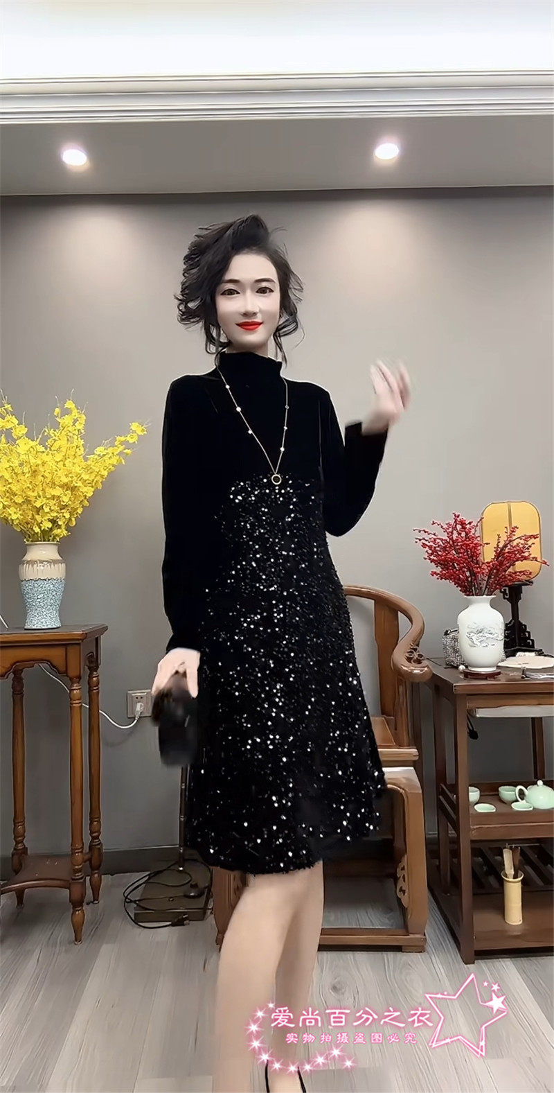 📚 2026年秋季新款连衣裙韩版气质名媛风赫本高龄中长款亮片女A字裙