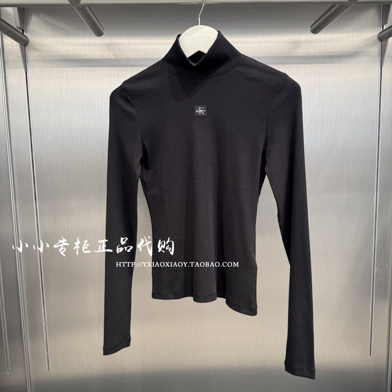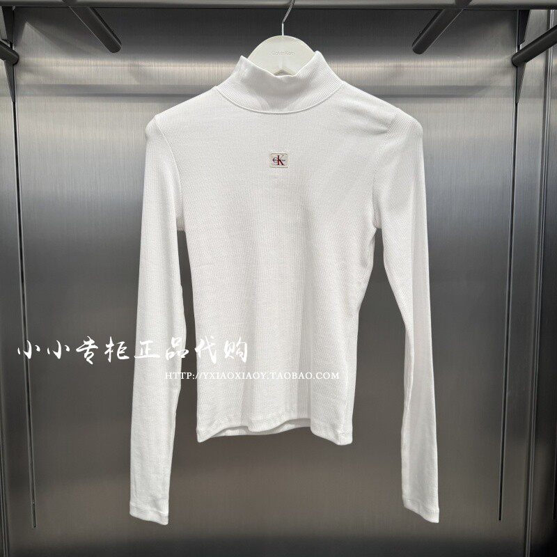 📚 CK Jeans专柜正品 2025秋款女士刺绣半高领打底衫长袖T恤 47D203G