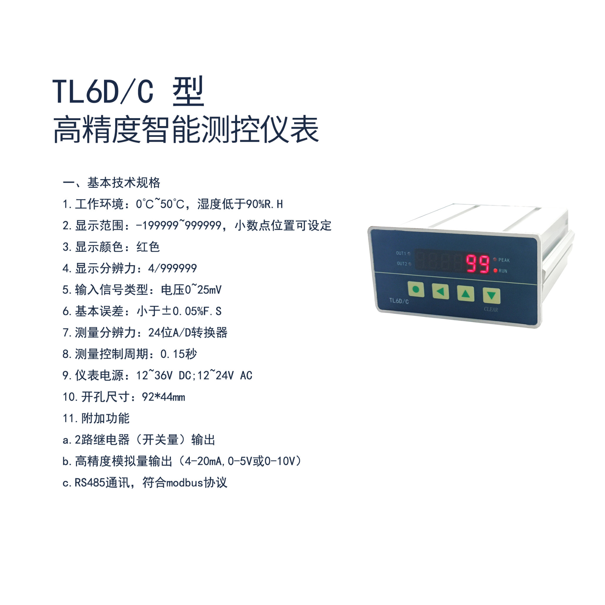 📚 TL6D/C六位高精度智能仪表称重测控显示可变送输出一键清零继电器