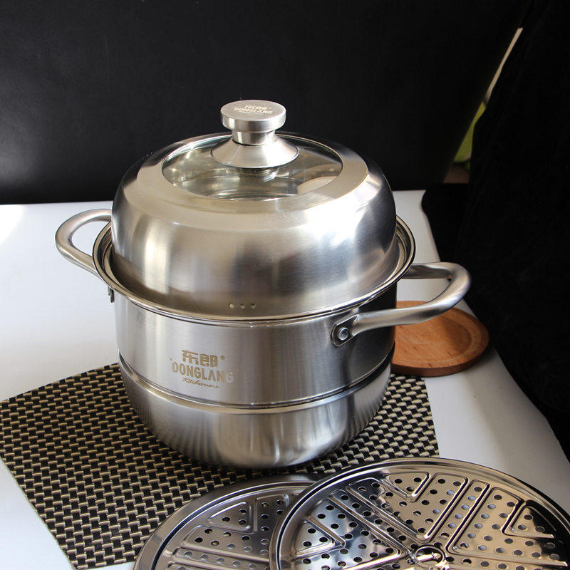 📚 东郎德式工艺一体成型锅底不锈钢加厚双层大蒸锅蒸鱼多用26-36cm