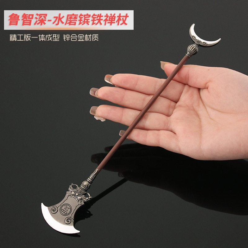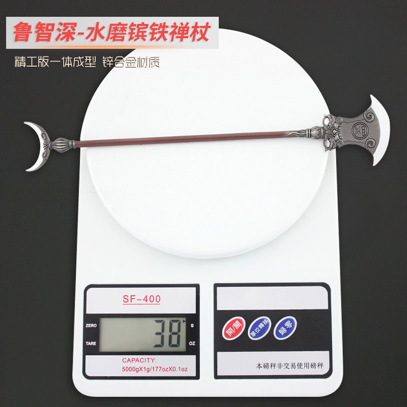 📚 水浒传鲁智深古兵器模型 水磨镔铁禅杖金属摆件合金玩具22cm