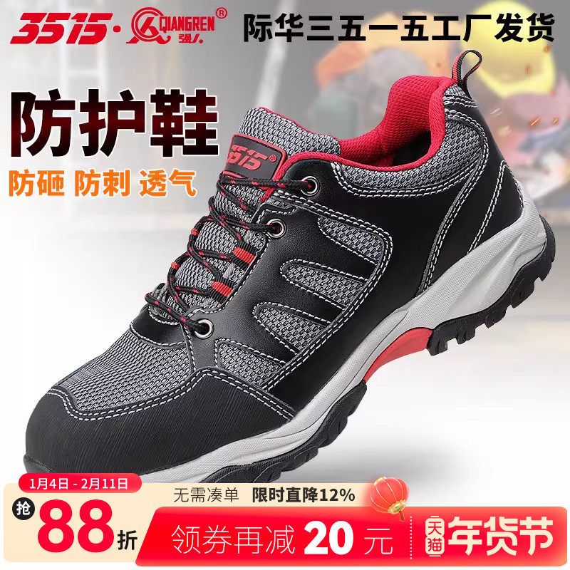📚 3515强人劳保鞋男透气网眼钢包头防砸防刺穿工装安全防护鞋工作鞋