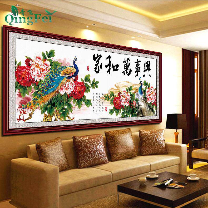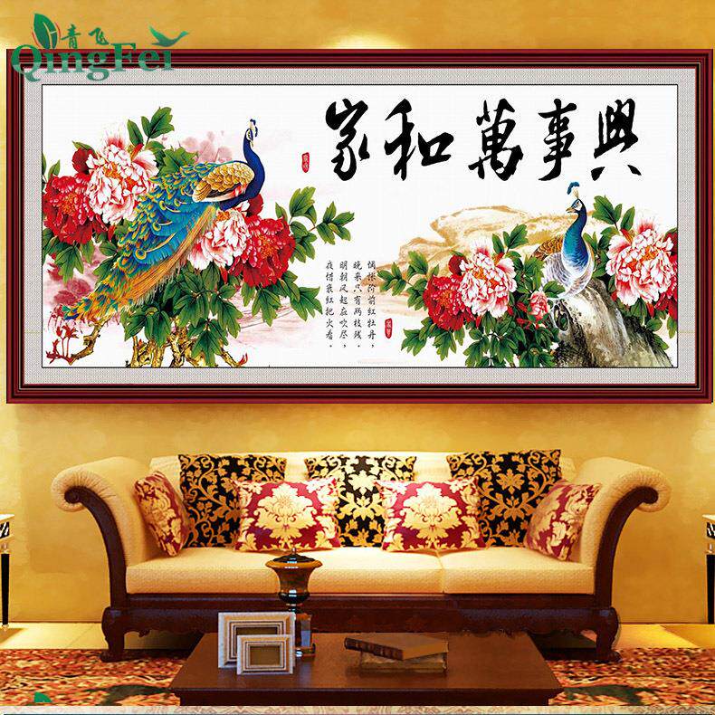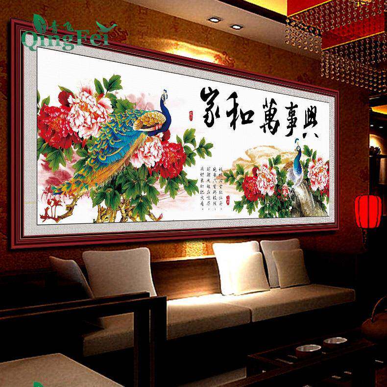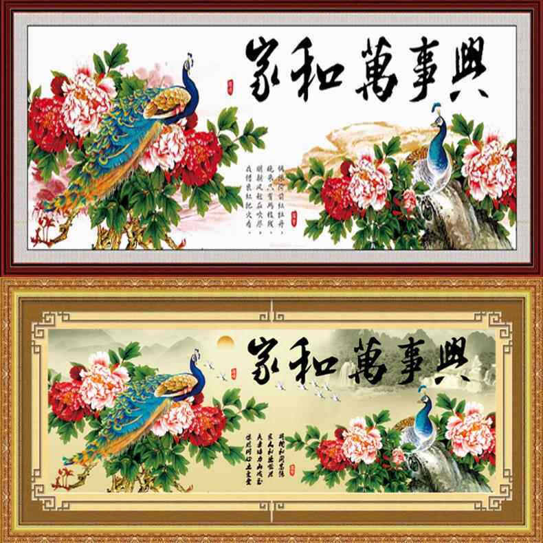 📚 青飞精准印布家和万事兴富贵牡丹孔雀十字绣家兴孔雀有钻石画