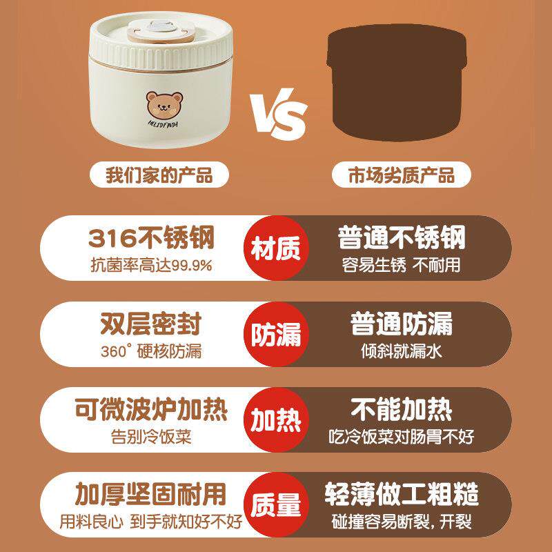 📚 24小时超长保温饭盒316不锈钢桶上班族学生插电加热便当盒密封盒