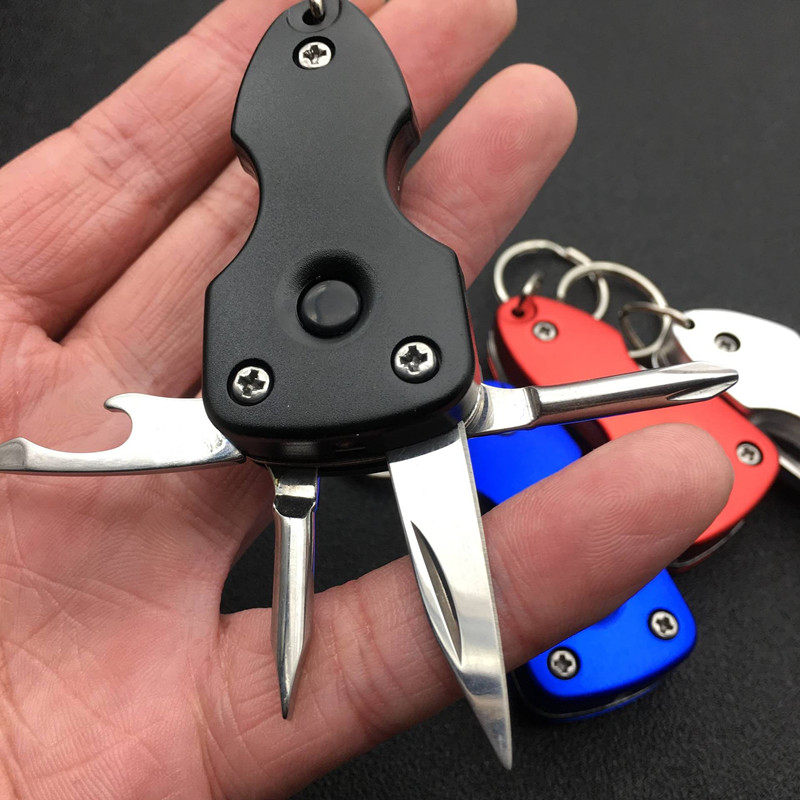 📚 多功能多用组合工具 五合一钥匙扣便携EDC装备 带刀开瓶器LED小灯