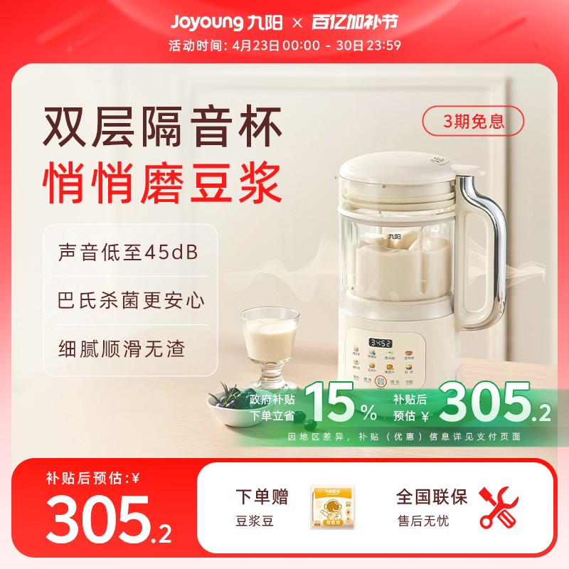 📚 九阳豆浆机轻音破壁机小型家用全自动多功能官方大容量料理机D360