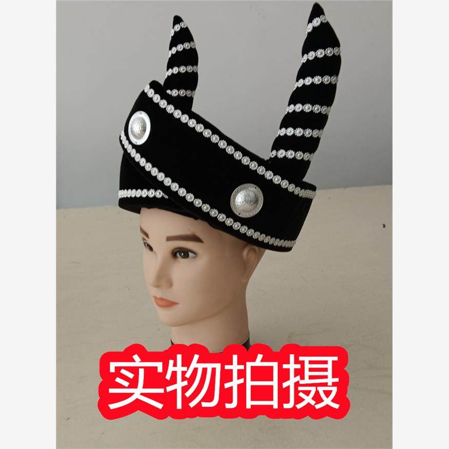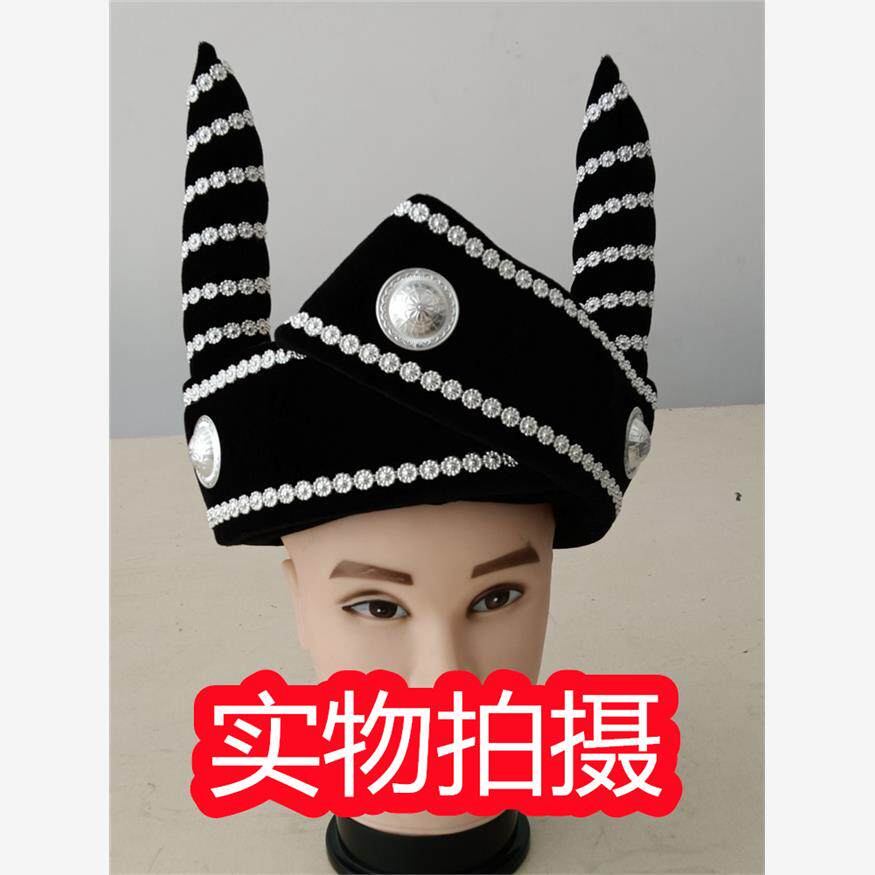 📚 少数民族双层男士演出帽子双角头饰云南彝族加厚傣族佤族苗族演出
