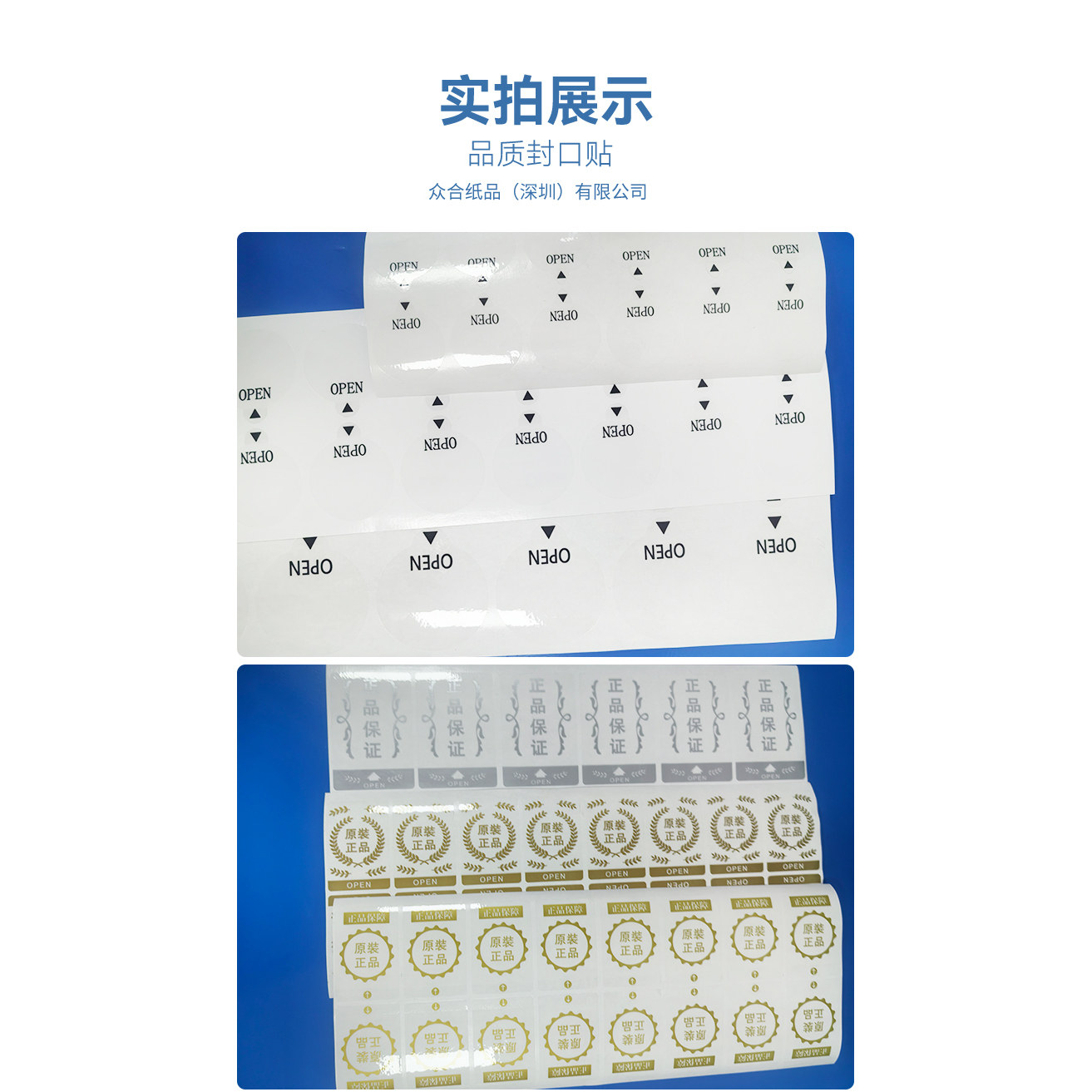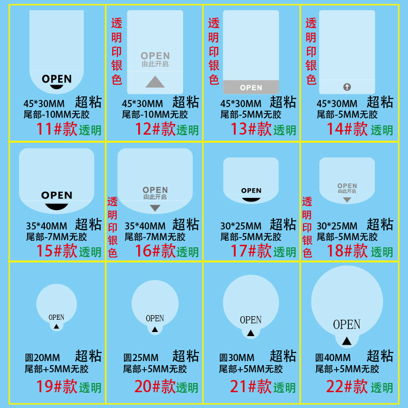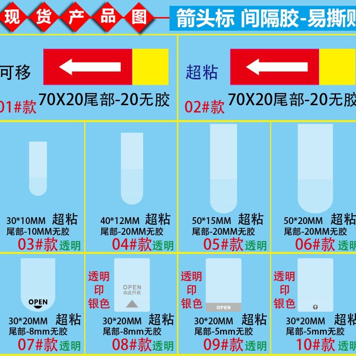 📚 易撕贴OPEN透明封口贴间隔胶箭头标签抽拉盒包装盒定制封口不干胶