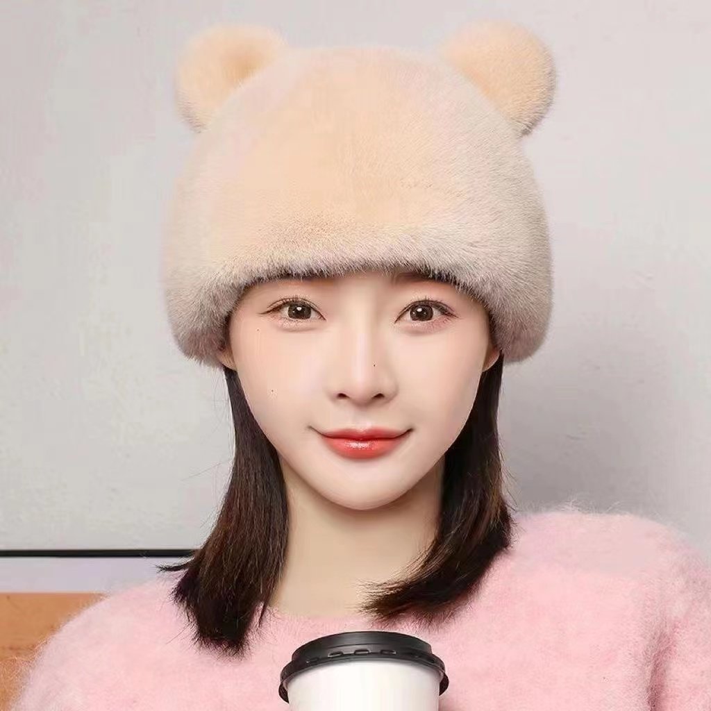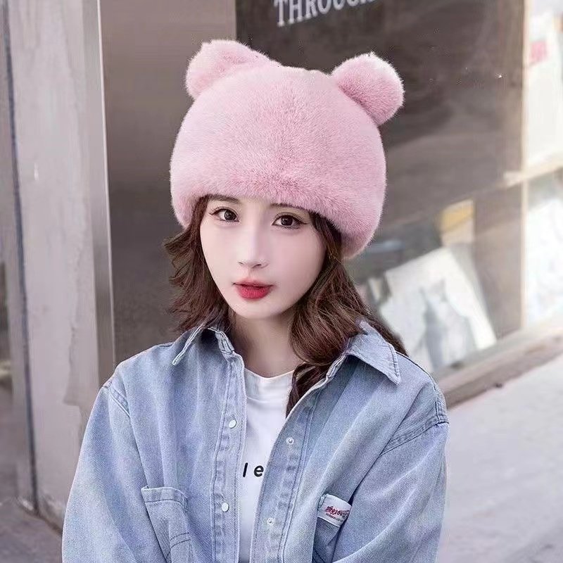 📚 欧貂女士帽子冬新款兔耳朵仿皮草帽小熊耳朵帽兔毛绒猫耳加厚帽潮