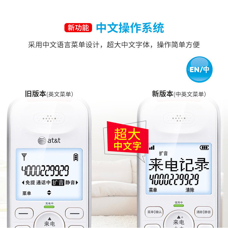 📚 AT&T54102无绳电话机固定座机家用老人固话子母机办公无线一拖一