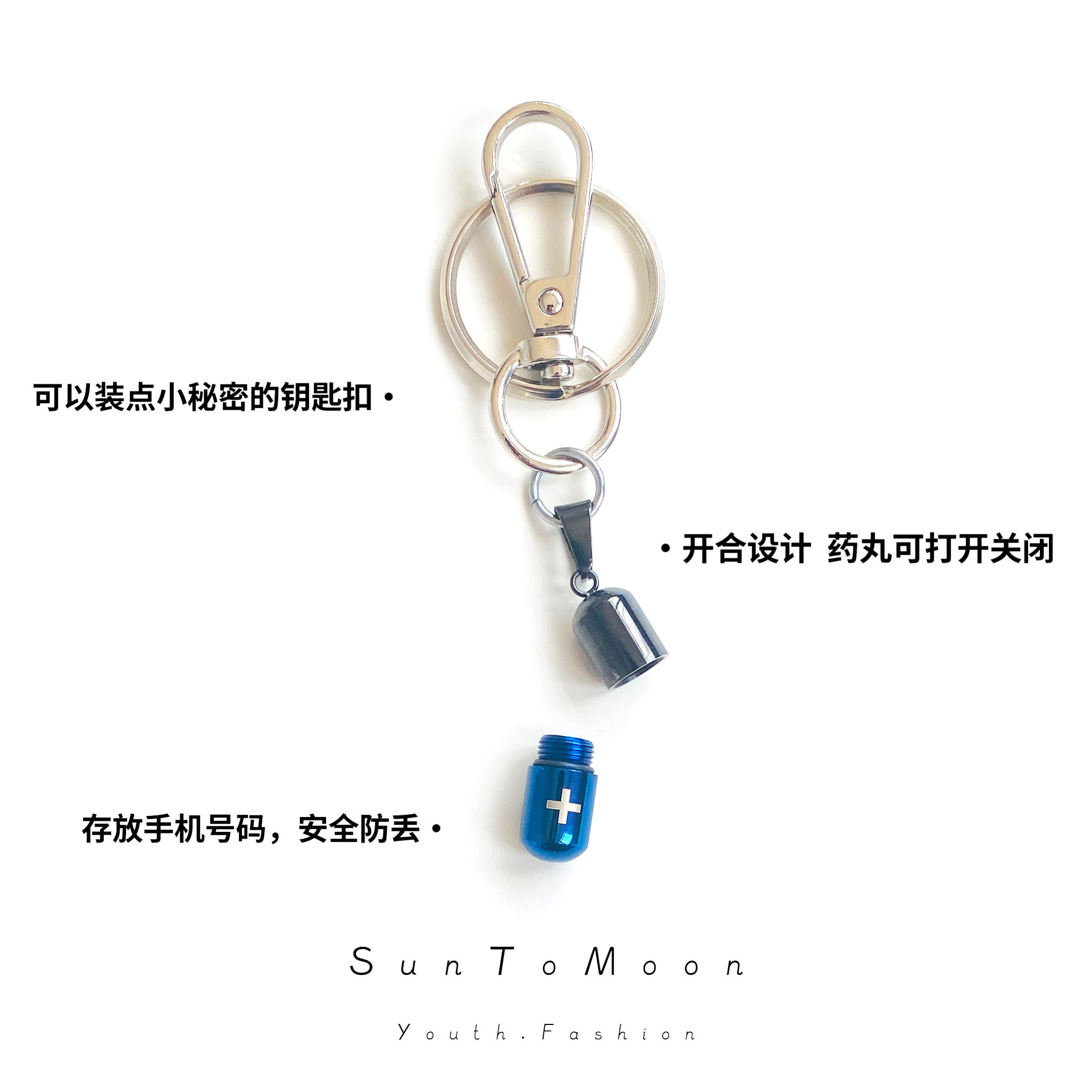 📚 可以装东西的小药丸创意钥匙扣存放号码防丢钥匙链书包挂件饰品