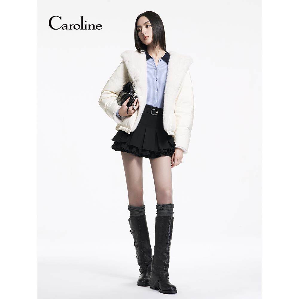 📚 Caroline卡洛琳2025冬季新款温柔毛领连帽短款羽绒服ERC7G13C
