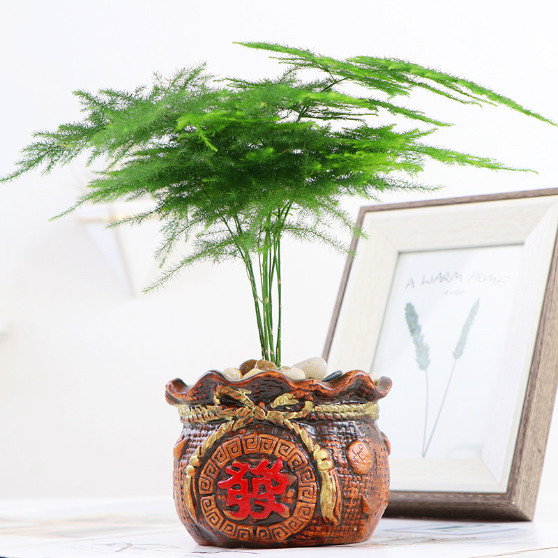 📚 文竹盆栽植物办公室内摆件水养水培绿植小盆景造型创意大文竹花苗