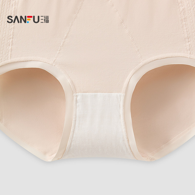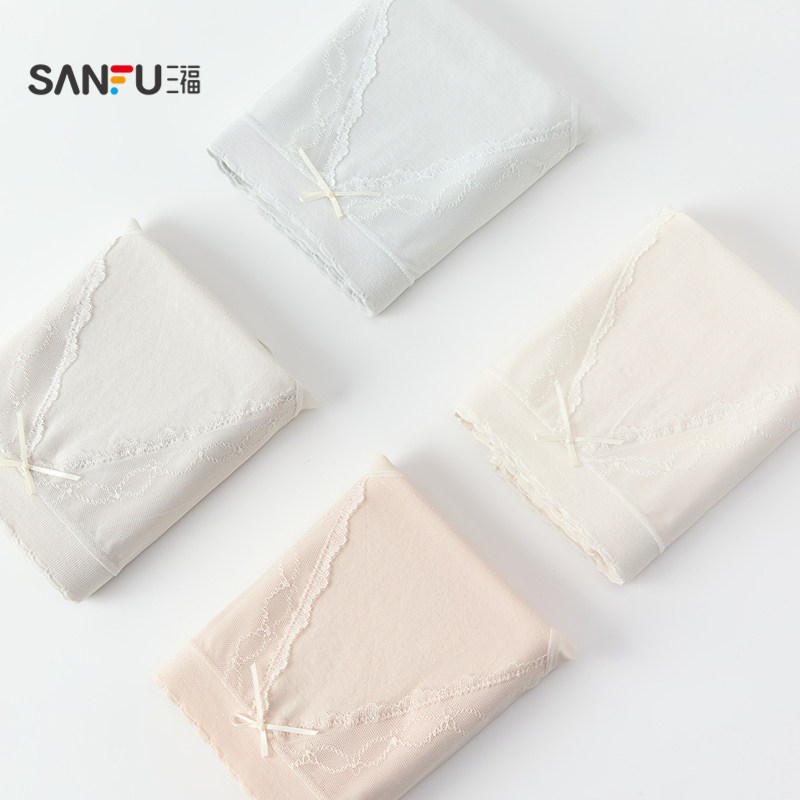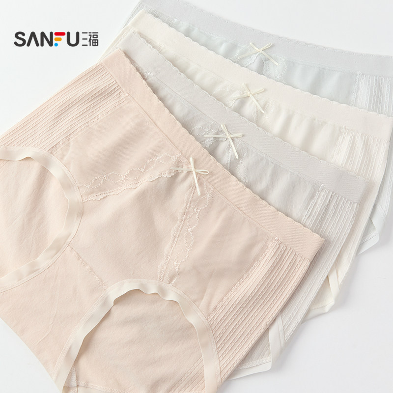 📚 三福 女高腰包臀内裤 简约无缝提花蕾丝花边柔软三角裤女513527