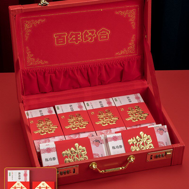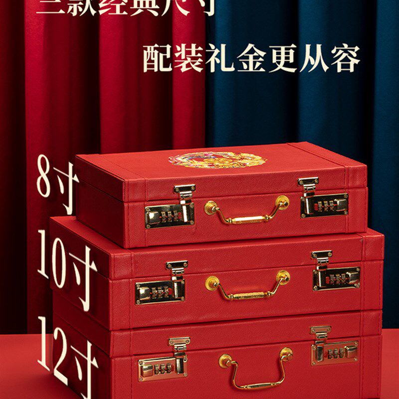 📚 订婚装彩礼的箱子礼金盒带密码锁高端聘礼提亲手提装钱的盒子喜庆