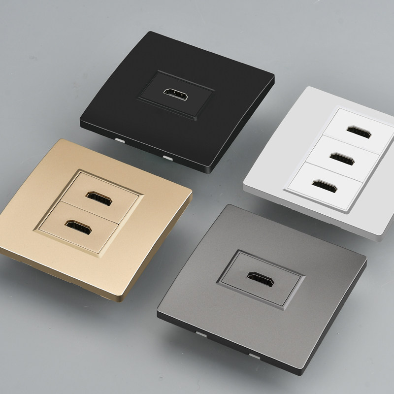 📚 86型墙壁灰色香槟金黑色HDMI面板高清线多媒体电脑电视连接口插座