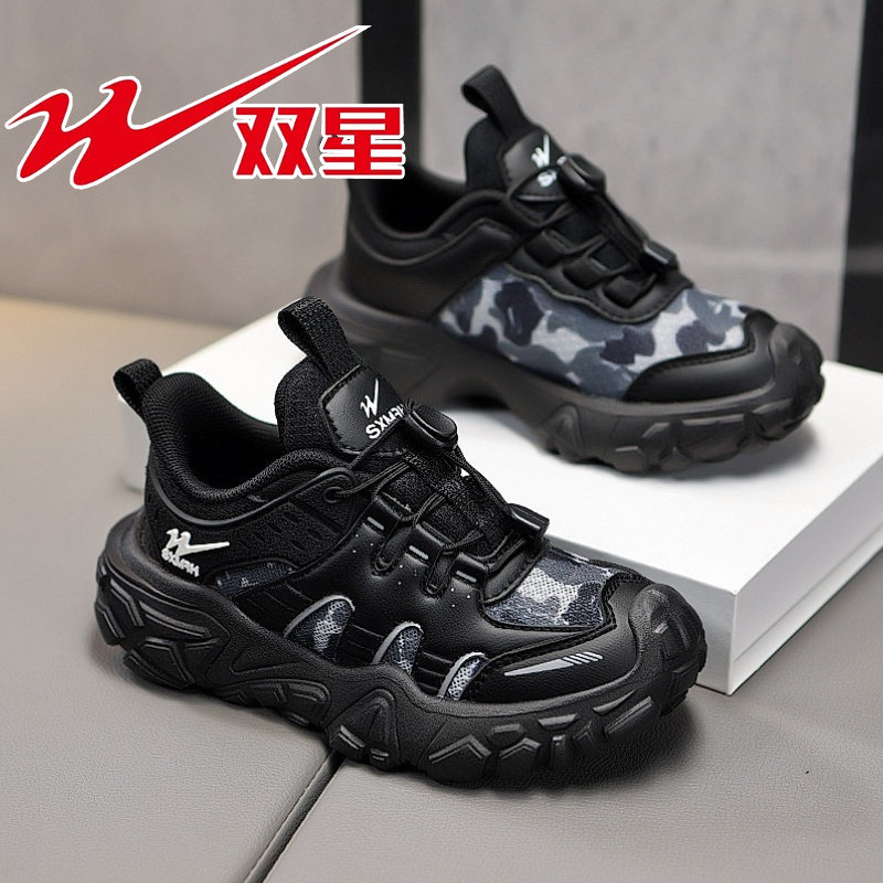 #双星男童鞋 #秋冬新款 #皮面防水 #黑色运动鞋 #冬季保暖好物