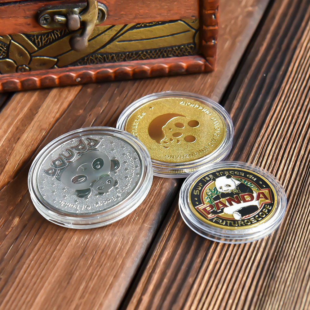 📚 创意中国熊猫浮雕动物纪念币牙仙子金银烤漆硬币纪念章儿童礼物品
