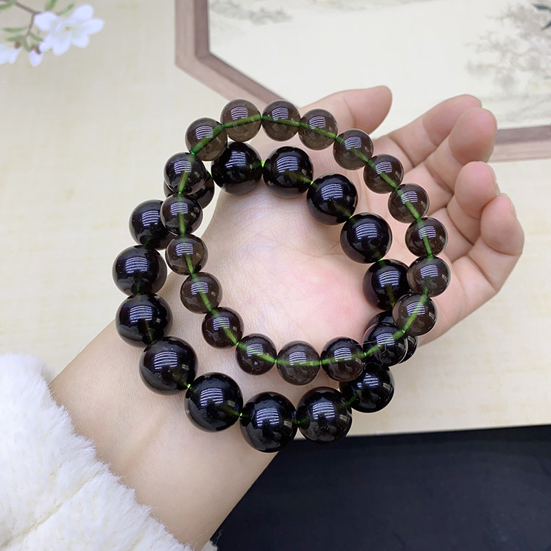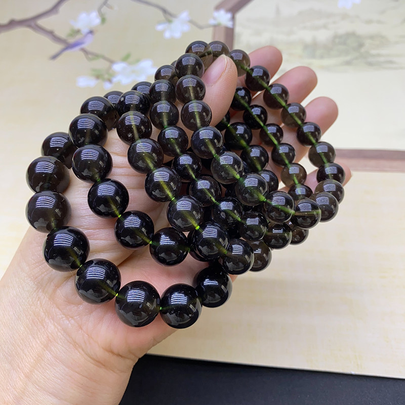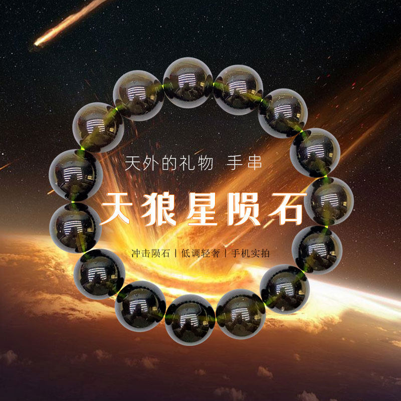 📚 真品 天然天狼星玻璃陨石手串散珠圆珠太空冲击陨石手链时尚简约