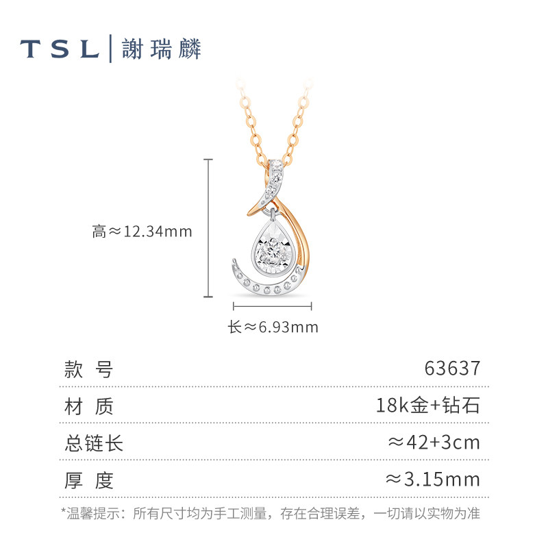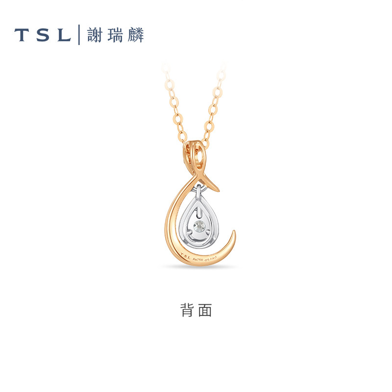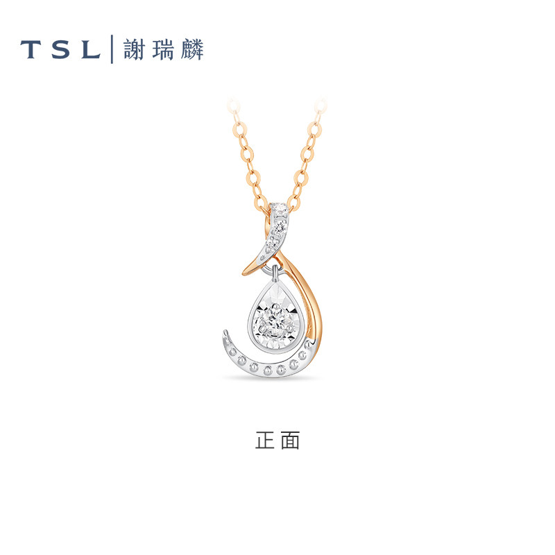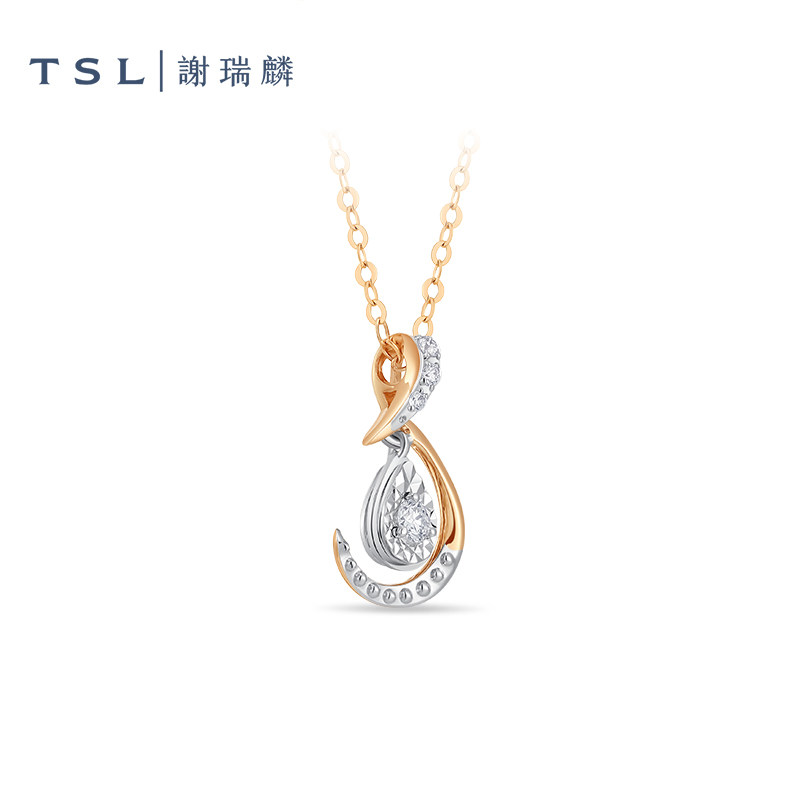 📚 情人节TSL谢瑞麟TGOL动惑丝带系列18K金钻石项链双色彩金锁骨链女