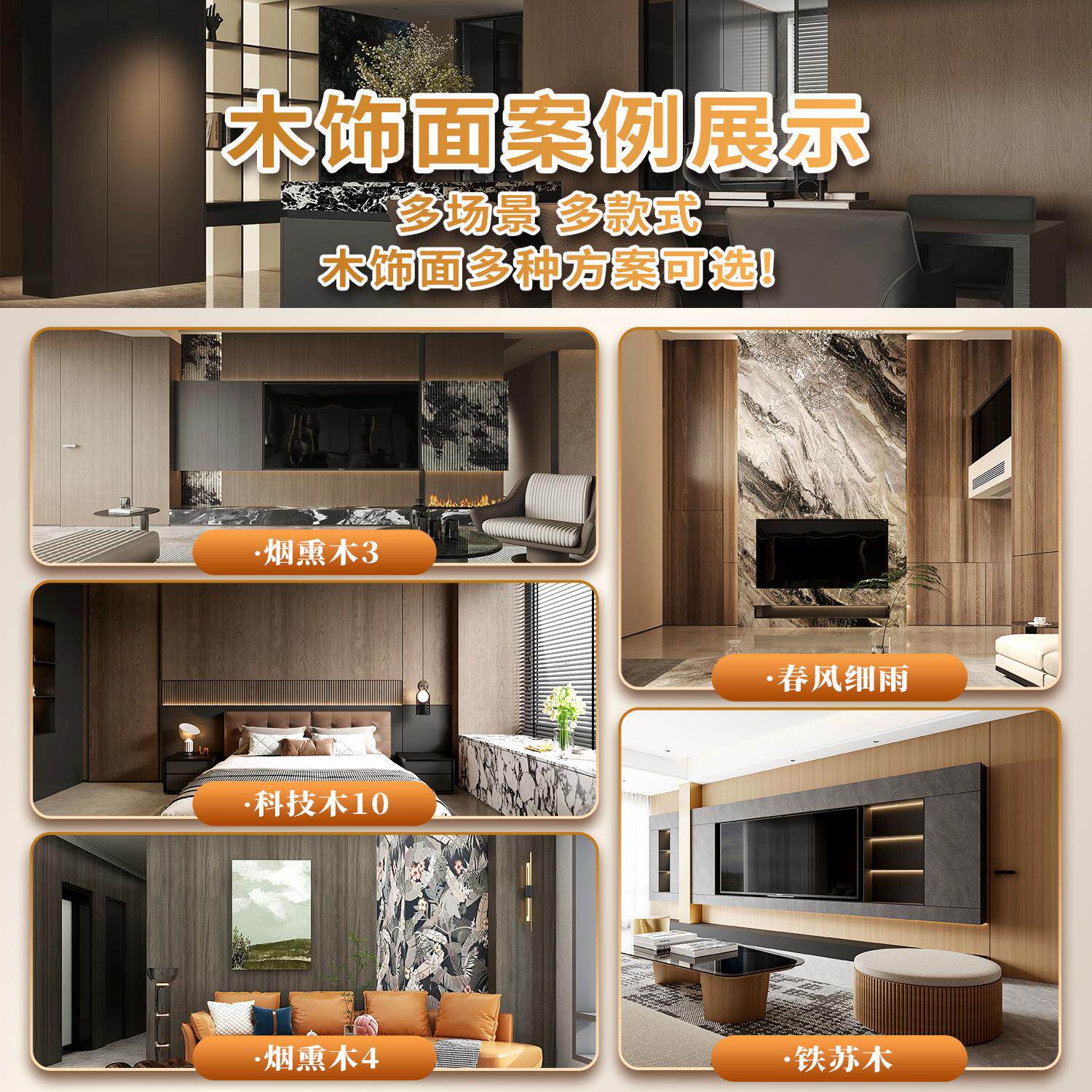 📚 木饰面墙板碳晶板室内背景墙装修护墙板装饰板木纹无缝集成金属板