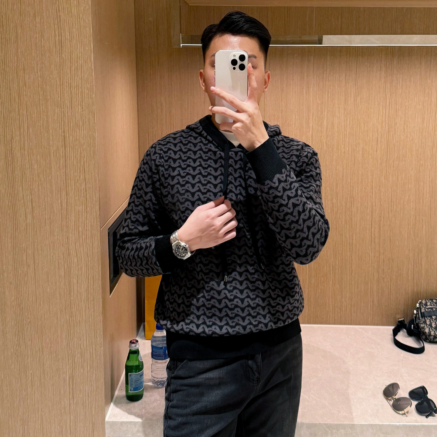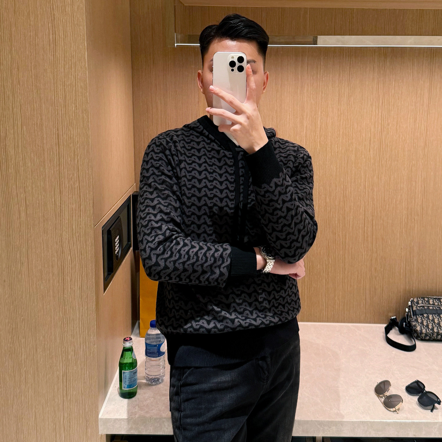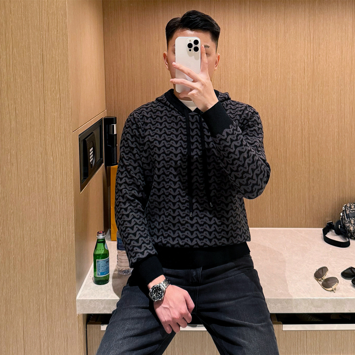 📚 秋冬新款休闲男式保暖上衣连帽针织衫时尚复古独特字母提花毛衣男
