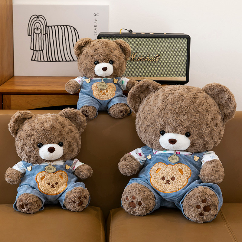 泰迪公仔背带裤毛绒玩具条纹