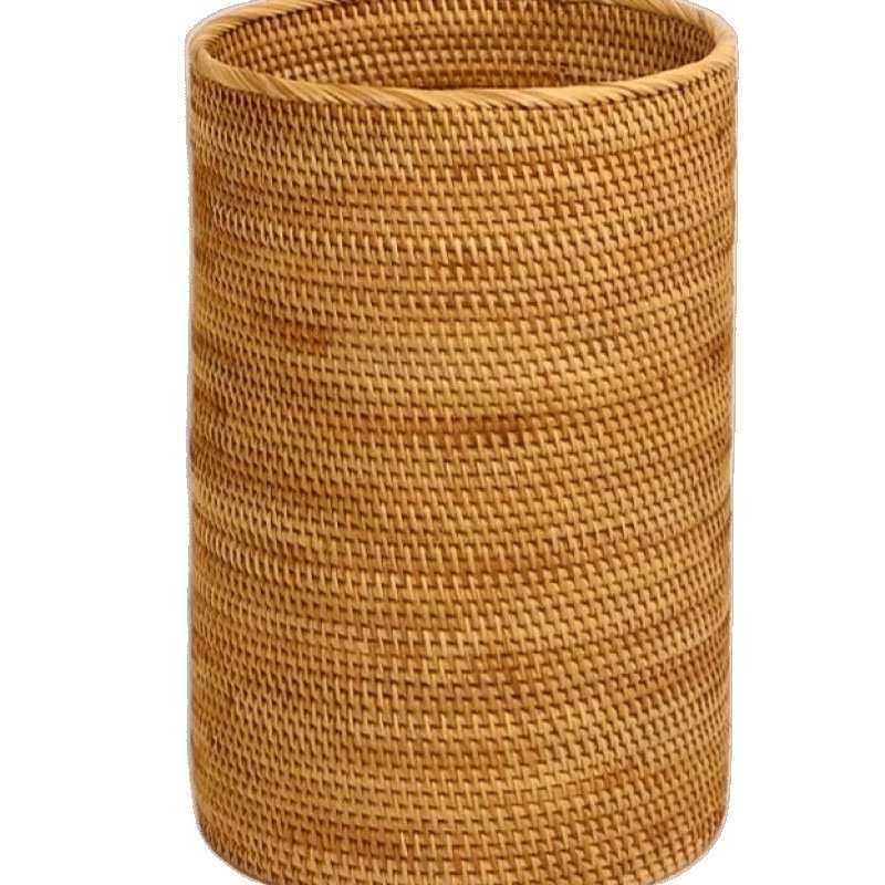 📚 越南藤编书画大号收纳筐字画收纳缸中式书房圆纸篓书法卷轴桶