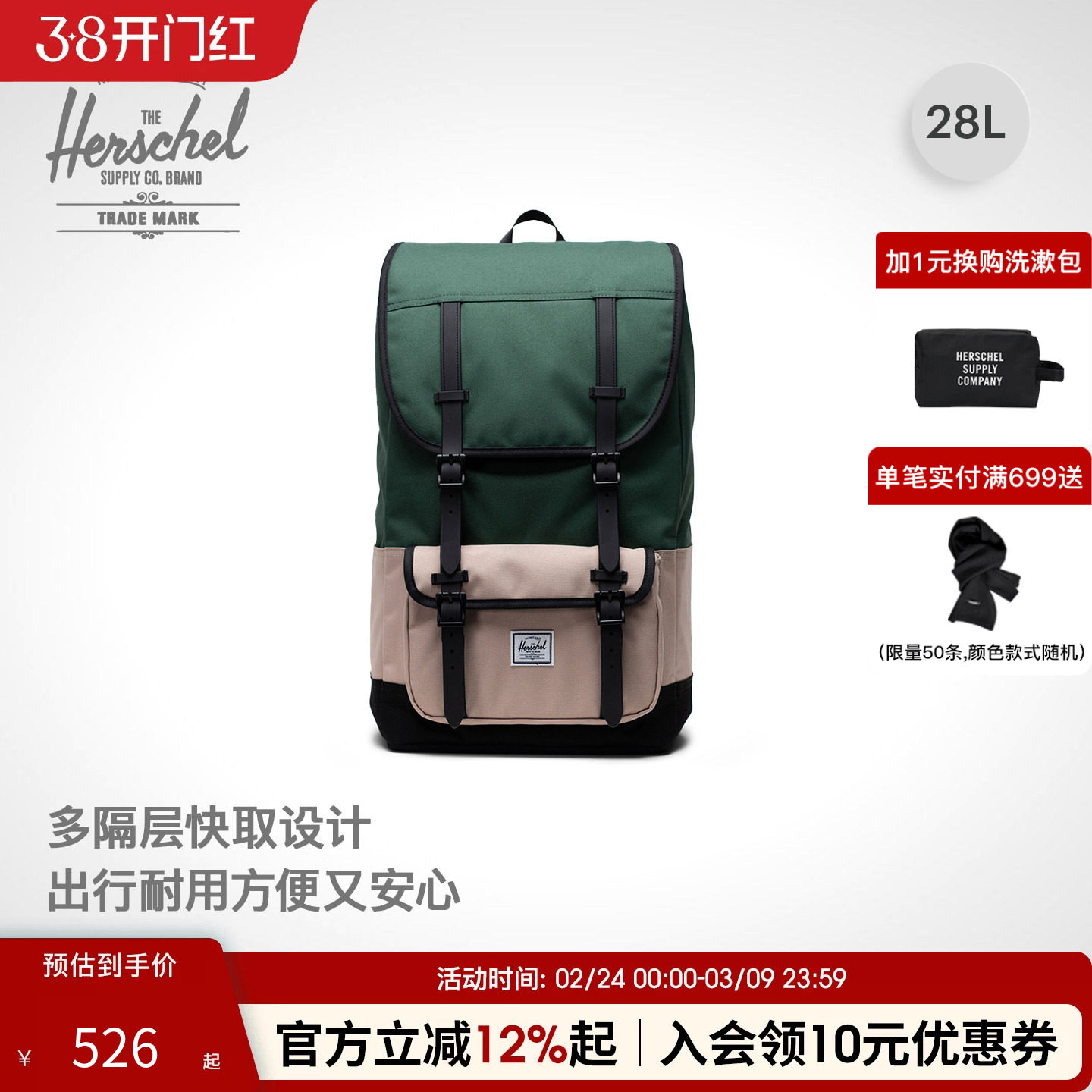 49¥ HU926 rzdOUG0UNnP¥ https://m.tb.cn/h.iXOwIOb Herschel赫行 ECO系列Little America Pro大容量旅行户外双肩包 --------------------- 【原售价】1,048元 【优惠券】10元 【券后价】1,038元。
