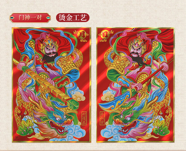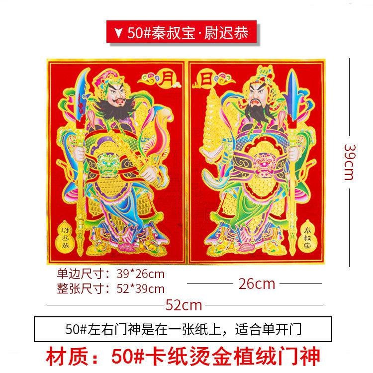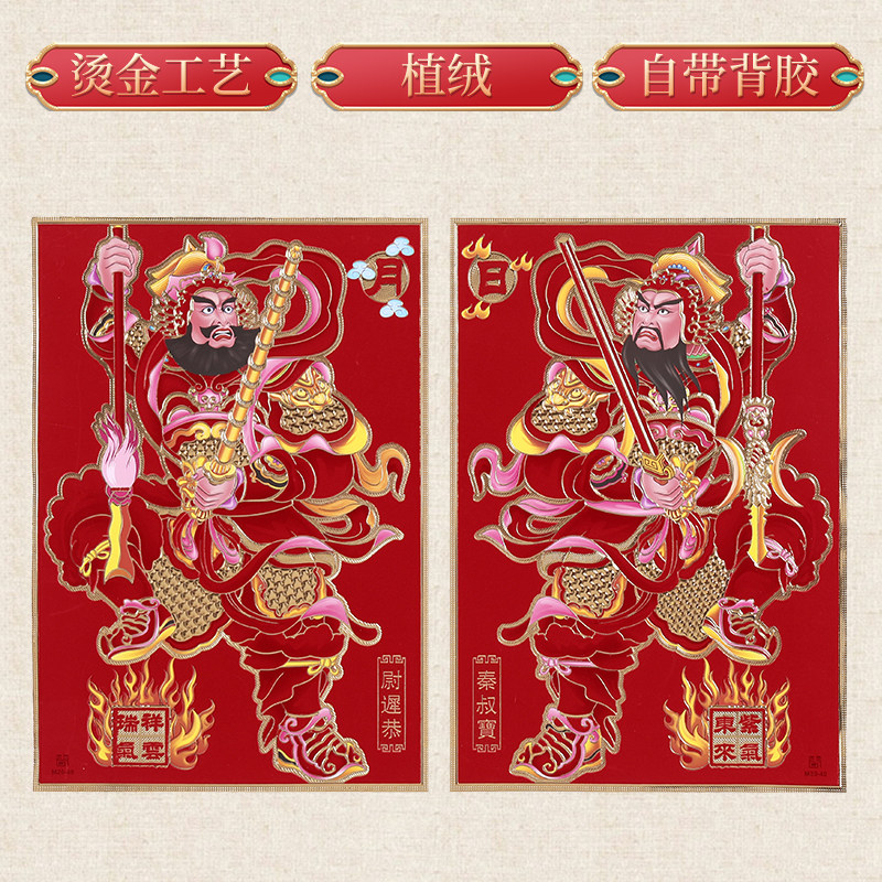 📚 秦琼尉迟恭门神防盗单门植绒烫金门神画新年装饰大门春节年画门贴
