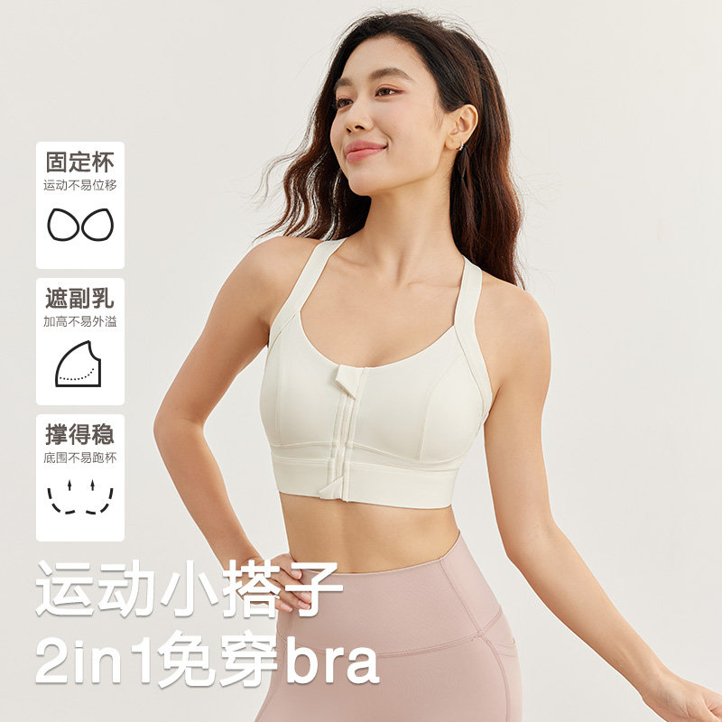 📚 neverme前拉链运动内衣女交叉美背健身文胸跑步高强度聚拢收副乳